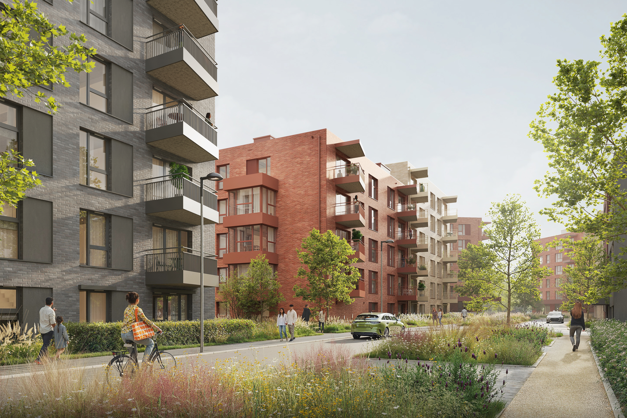 Projektowane osiedle składa się z 4. półotwartych, przenikających się kwartałów otaczających tereny zieleni urządzonej – wewnętrzne małe parki o charakterze krajobrazowym. Budynki otaczają szerokie wewnętrzne dziedzińce z wejściami do klatek schodowych z tych przestrzeni.